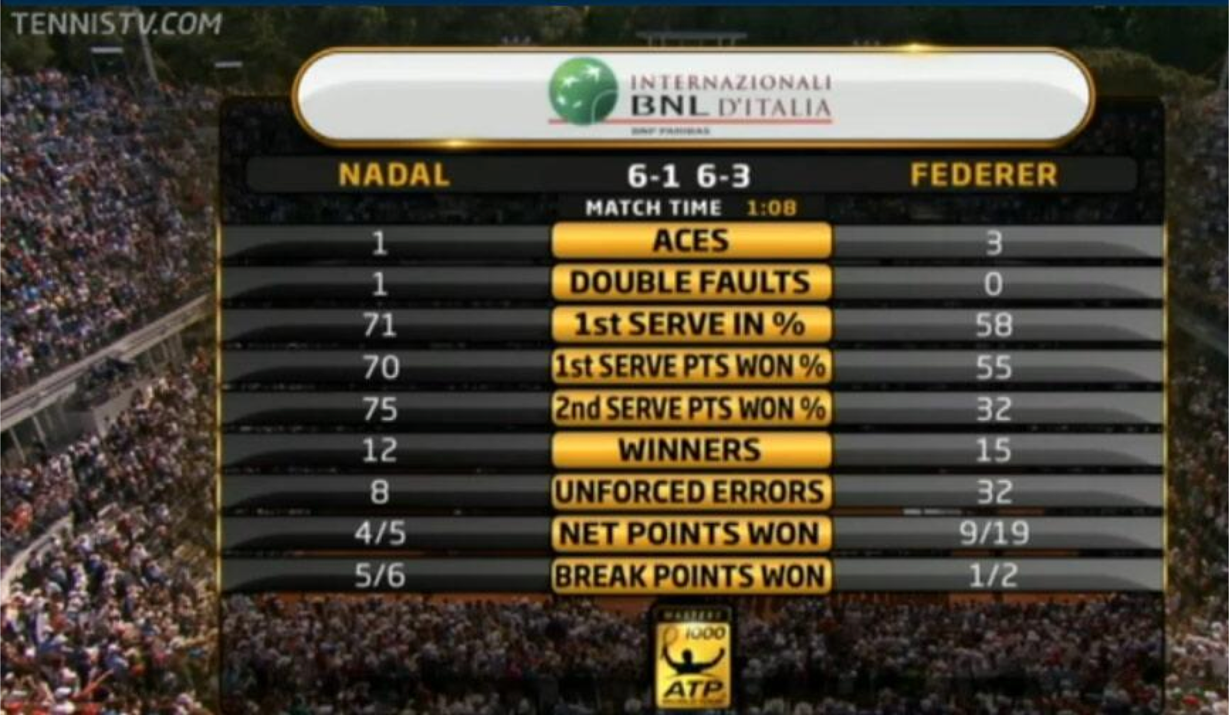 Nadal era imbatible en tierra batida. Llegó a ganar 81 partidos consecutivos. No te ganaba en ganadores, te ganaba haciendo que fallaras. Cuando te devolvía la bola por vigesimoquinta vez, desquiciado, la tirabas fuera. Habías conectado tres potenciales ganadores seguidos a la línea pero, incrédulo de seguir jugando ese punto, fallabas.